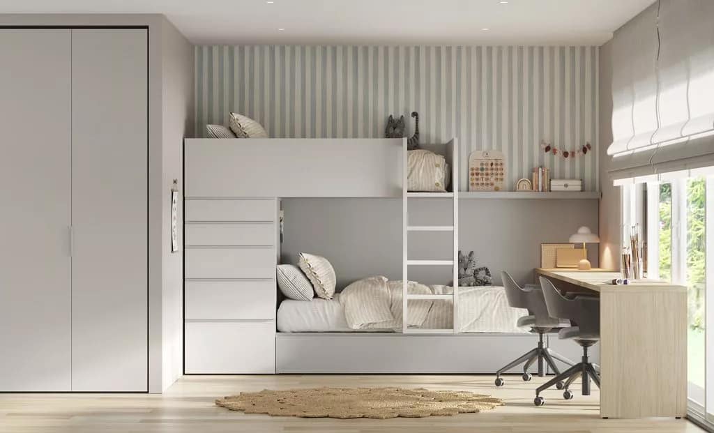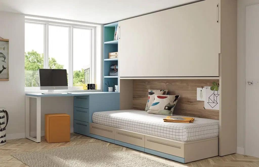 Camas Juveniles Funcionales: Camas nido, literas, camas tren y versátiles camas abatibles juveniles que liberan espacio durante el día.