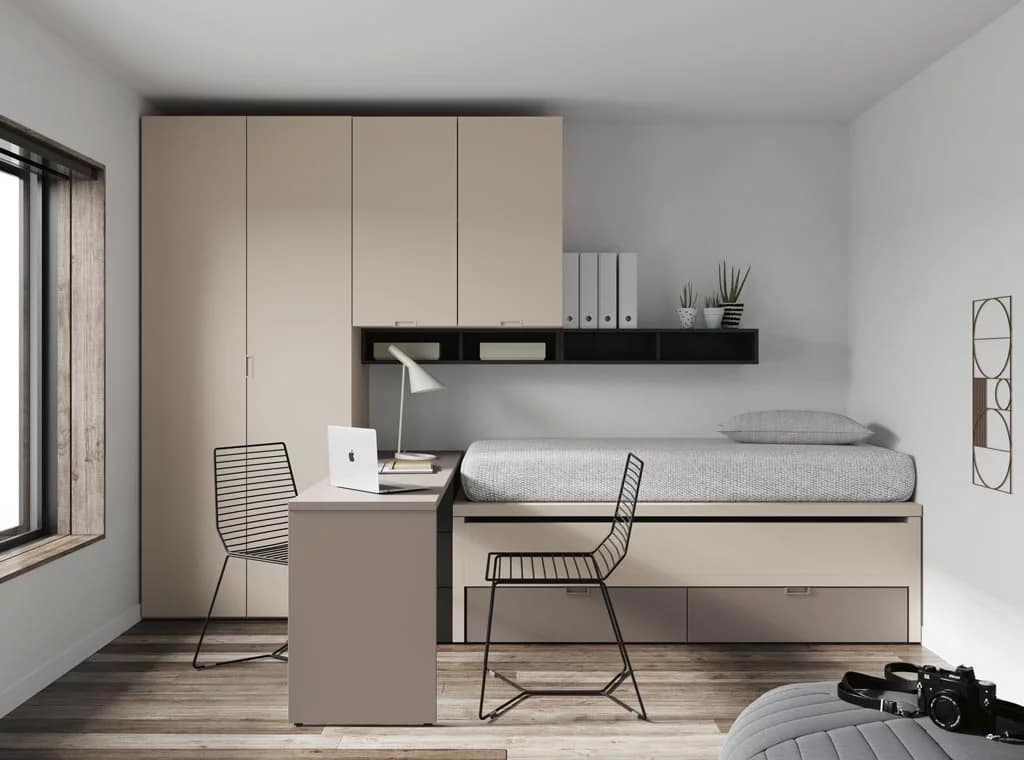Soluciones de Espacio innovadoras, como los populares dormitorios puente o las composiciones a medida.